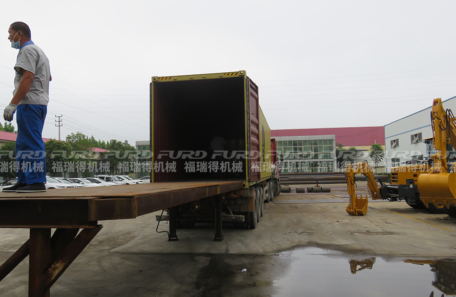 9月3日,福瑞得機(jī)械6臺(tái)手扶雙輪壓路機(jī)、和2臺(tái)9米移動(dòng)燈車裝車出口非洲。