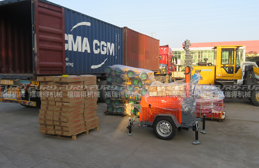 福瑞得機(jī)械12臺移動(dòng)燈車打包裝車出口印尼
