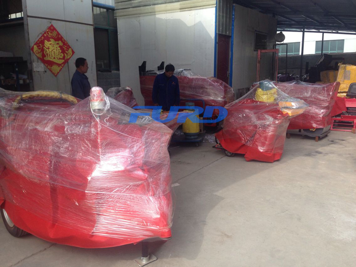 福瑞得機(jī)械座駕壓路機(jī)、大容量灌縫機(jī),小型灌縫機(jī)包裝完畢準(zhǔn)備發(fā)貨