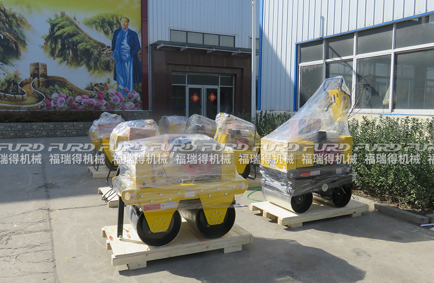 3月4日,福瑞得13臺(tái)小型手扶壓路機(jī)(8臺(tái)手扶雙輪,5臺(tái)手扶單輪)打包裝箱出口印度 。