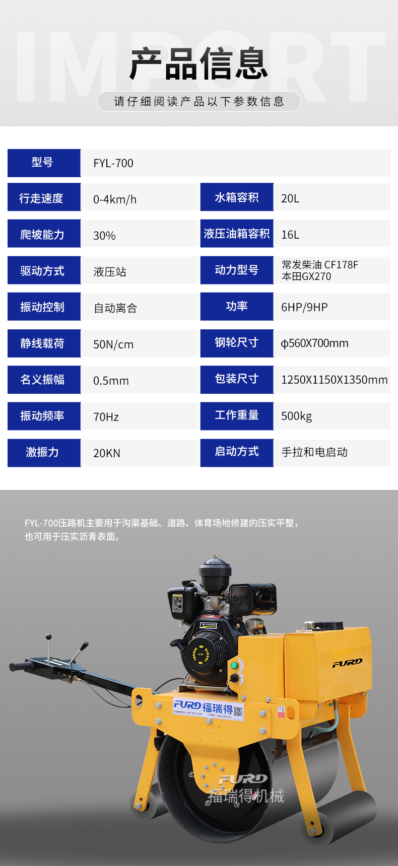 FYL-700 小型手扶式單輪壓路機