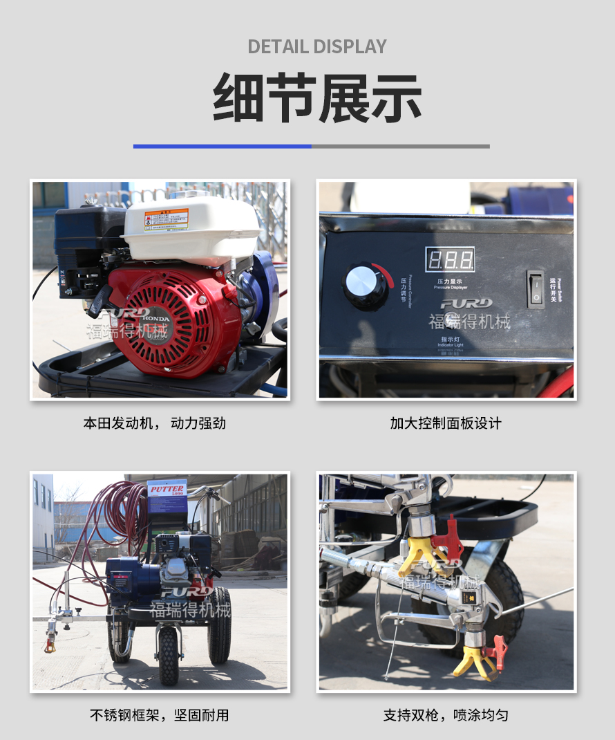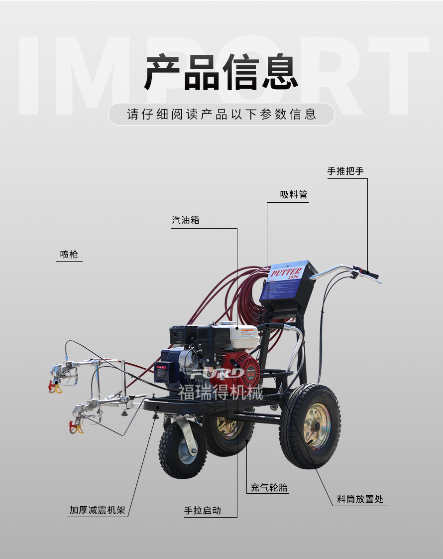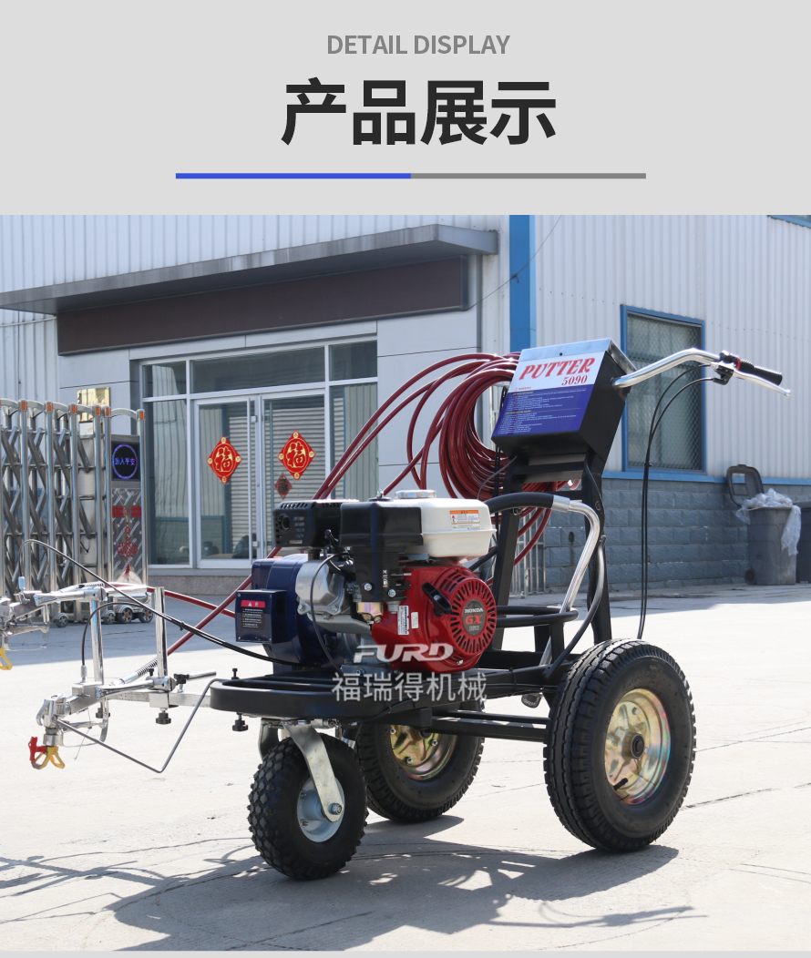 小型手推式道路劃線機是一種在道路、停車場、廣場和跑道等平整地面上劃出不同約束、指引和警示等規(guī)則限制標志的路面施工機械。最常見的就是在馬路上劃斑馬線,在路上劃車庫線、停車線等等應用于小型工程、短途施工,活動方便,靈活操作。