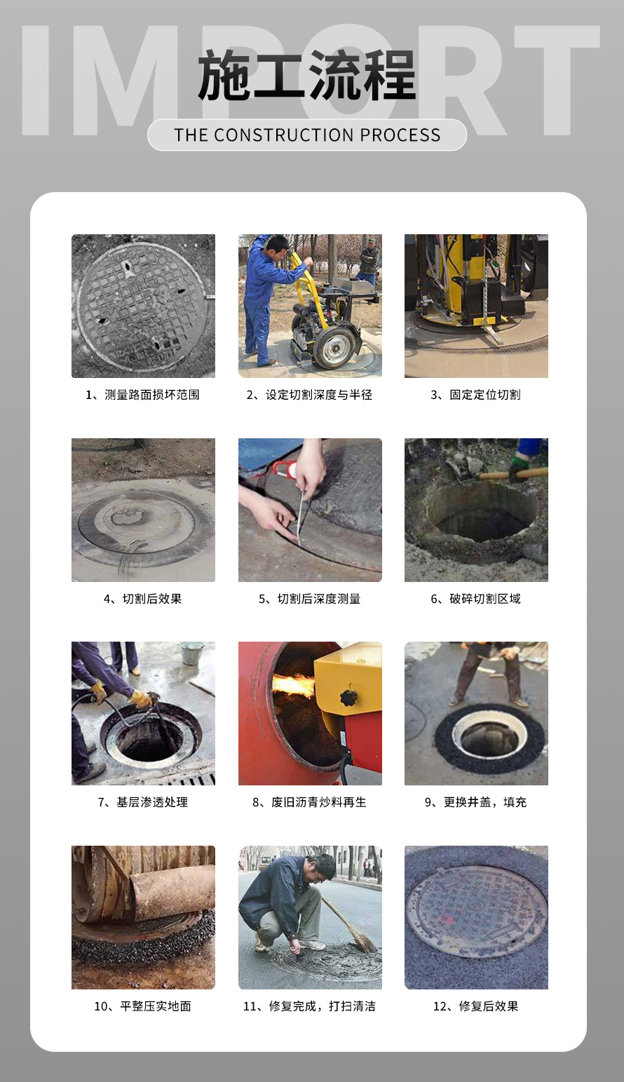 專門用于對城市道路中機(jī)動車道等井蓋周圍的水泥混凝土或瀝青路面進(jìn)行圓形切割。為清楚井蓋周圍的破損路面提供分割區(qū)域,修復(fù)后的地面美觀,延長了路面的使用壽命。