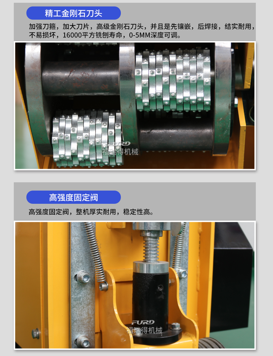 用于橋面鋪設(shè)瀝青或車間舊的混凝土地面重新攤鋪混凝土之前,清除水泥浮漿以及鏟平拉毛, 也用于清除建筑施工中的堅(jiān)硬灰渣。