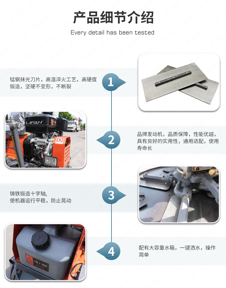 該機(jī)采用雙刀片,重量更重,對(duì)地面的壓實(shí)效果更好,比走后式動(dòng)力泥鏟機(jī)效率更高。